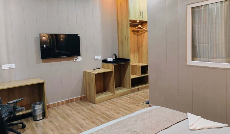 Indulge in the art of fine living with our Premium Room, where comfort meets sophistication in the most seamless way. Designed for guests who appreciate elegance, space, and modern amenities, the Premium Room offers a truly relaxing and luxurious retreat surrounded by style and serenity.Each Premium Room is crafted with attention to detail — from its soothing color palette and stylish décor to its warm lighting and plush furnishings. The spacious interiors create a perfect blend of modern design and homely comfort, ensuring you feel refreshed and rejuvenated throughout your stay.